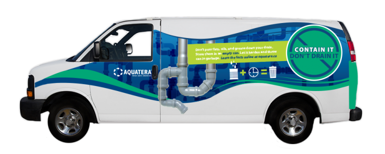 imageDESIGN has enjoyed a working relationship with Aquatera for years and has completed numerous projects for them, including vehicle wraps for multiple vans. Because different campaign messages appear on all sides of the vehicles, imageDESIGN created a border that tied into their overall brand, which kept a consistent element throughout.