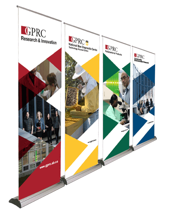 When GPRC Research & Innovation was looking to increase visibility of their department, to tie their different teams together, and catch students’ attention, they chose to work with imageDESIGN based on past experience working with our design team. The series of banners was the first step in their new look and sets the tone for an inviting, modern brand.