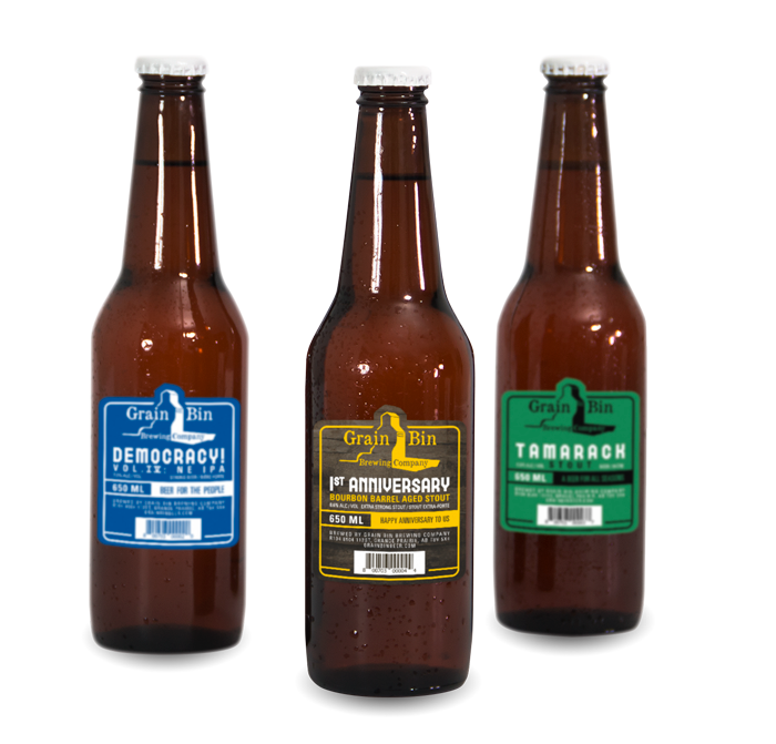 Grain Bin Brewing Company is a Grande Prairie craft brewery offering rotating, locally inspired seasonal beers as well as a few standards. When looking for labels that could be applied to their wide variety of brews, imageDESIGN pitched a clean design solution that looks great on the shelf. The range of colourful labels is as extensive as Grain Bin’s beer selection!