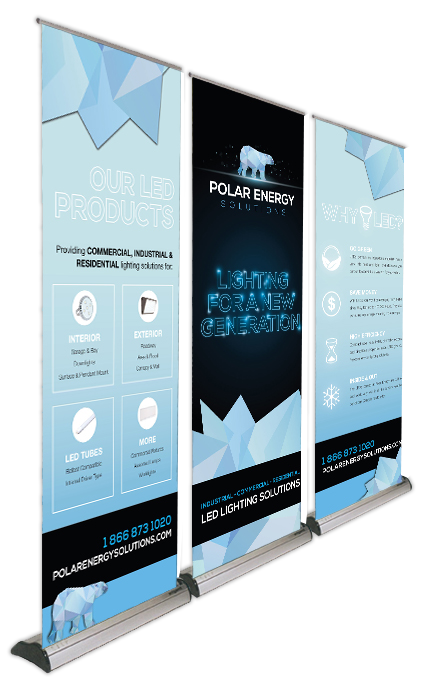 imageDESIGN has worked on the brand of LED company Polar Energy Solutions since they were founded in 2013. Besides designing their logo, business cards, website, deliverables, sales packages, and vehicle graphics, imageDESIGN created a series of banner stands for use at trade shows. With the icy look and clean, eye-catching design, the client got quite a bit of attention!