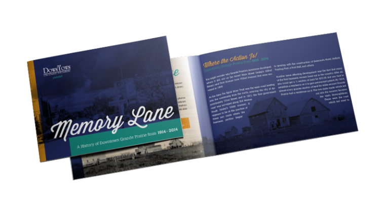 To ring in Grande Prairie’s 100th anniversary in 2014, the Grande Prairie Downtown Association wanted a legacy project that would recognize the history of the downtown core, while also encouraging locals and visitors to visit the area. imageDESIGN worked with the DTA, SPRA, and the Peace Country Historical Society to create the Memory Lane walking tour. We created temporary and permanent plaques, a guidebook, advertisements, posters, banners, bag stuffers, flagpole banners, and a website for the tour. So if you’re in Downtown Grande Prairie, check out Memory Lane!