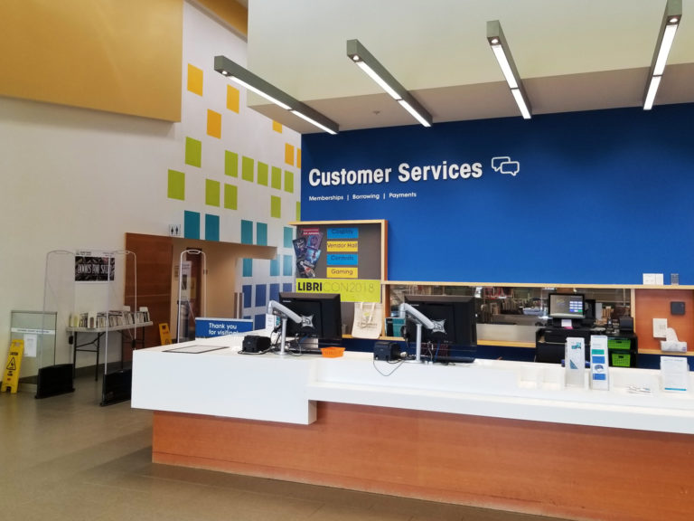 Wayfinding signage is one of the best things you can do for a large space. Not only does it help customers to navigate, but it’s also a perfect opportunity to show off your brand. The Grande Prairie Public Library wanted to upgrade their white walls and grey wayfinding signs to match their brand: energetic and bright. imageDESIGN was excited to inject colour into the space while also helping customers get around.